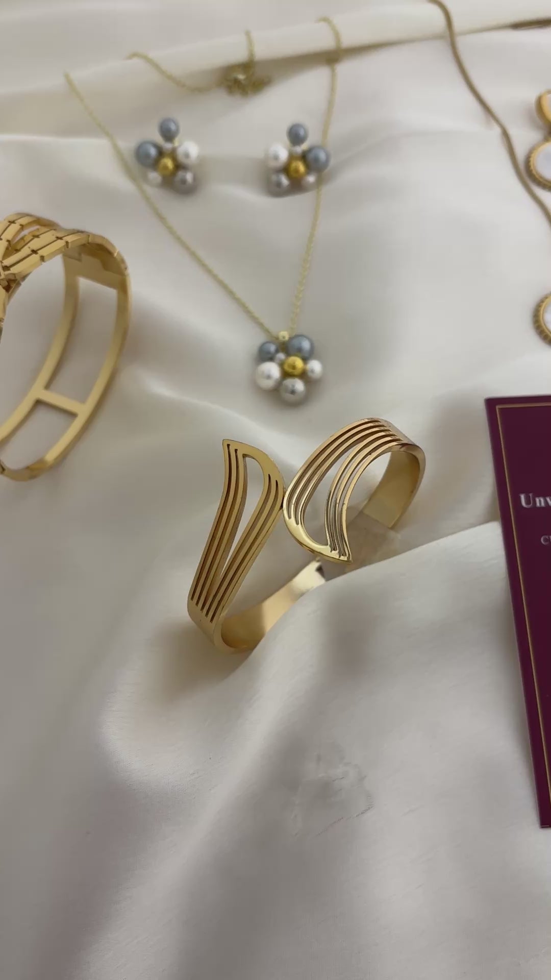 The Regal Radiance Set is a bold statement jewellery combo with gold cuffs, pearls, and modern designs. Crafted in premium anti-tarnish finish, it’s the perfect luxe gift for festive occasions and power dressing.